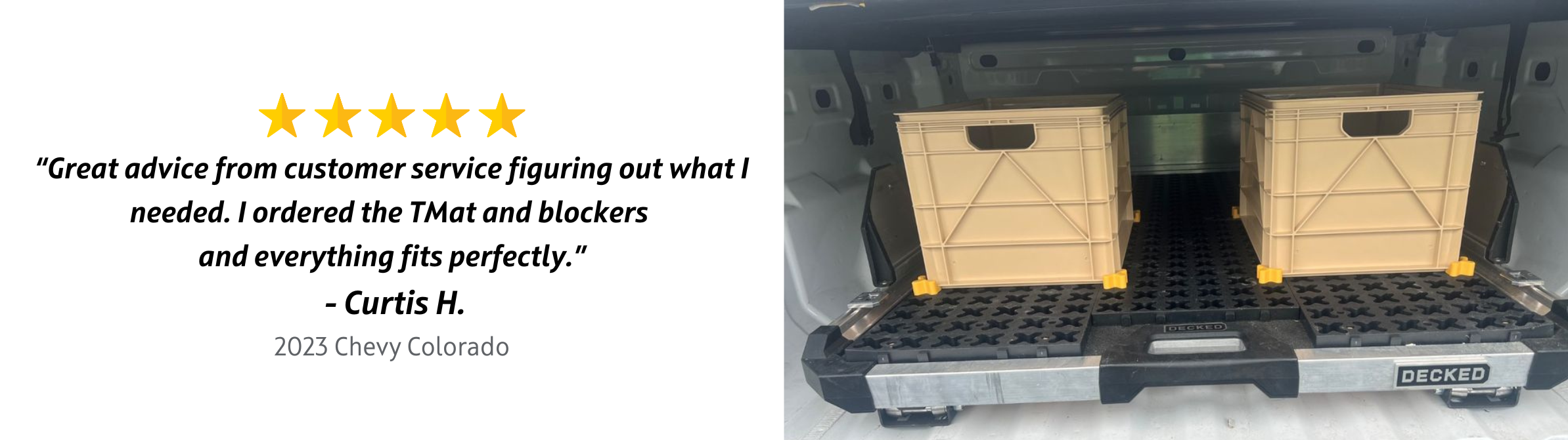 This cargo management system is built for Chevrolet Colorado truck bed organization. Adjustable blockers plug into the mat in any configuration to hold your tools and equipment in place. Designed to fit between the wheel wells, it slides out to the tailgate for quick, easy access to your cargo. Works with drawer systems, bed slides, and other custom setups.