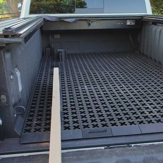 Whereas most standard bed dividers separate the bed horizontally, the versatility of the Tmat system allows you to place your Bed Divider anywhere on the bed in any orientation. Users can bolt their 2x4s to the Accessory in build a more permanent layout for their needs.