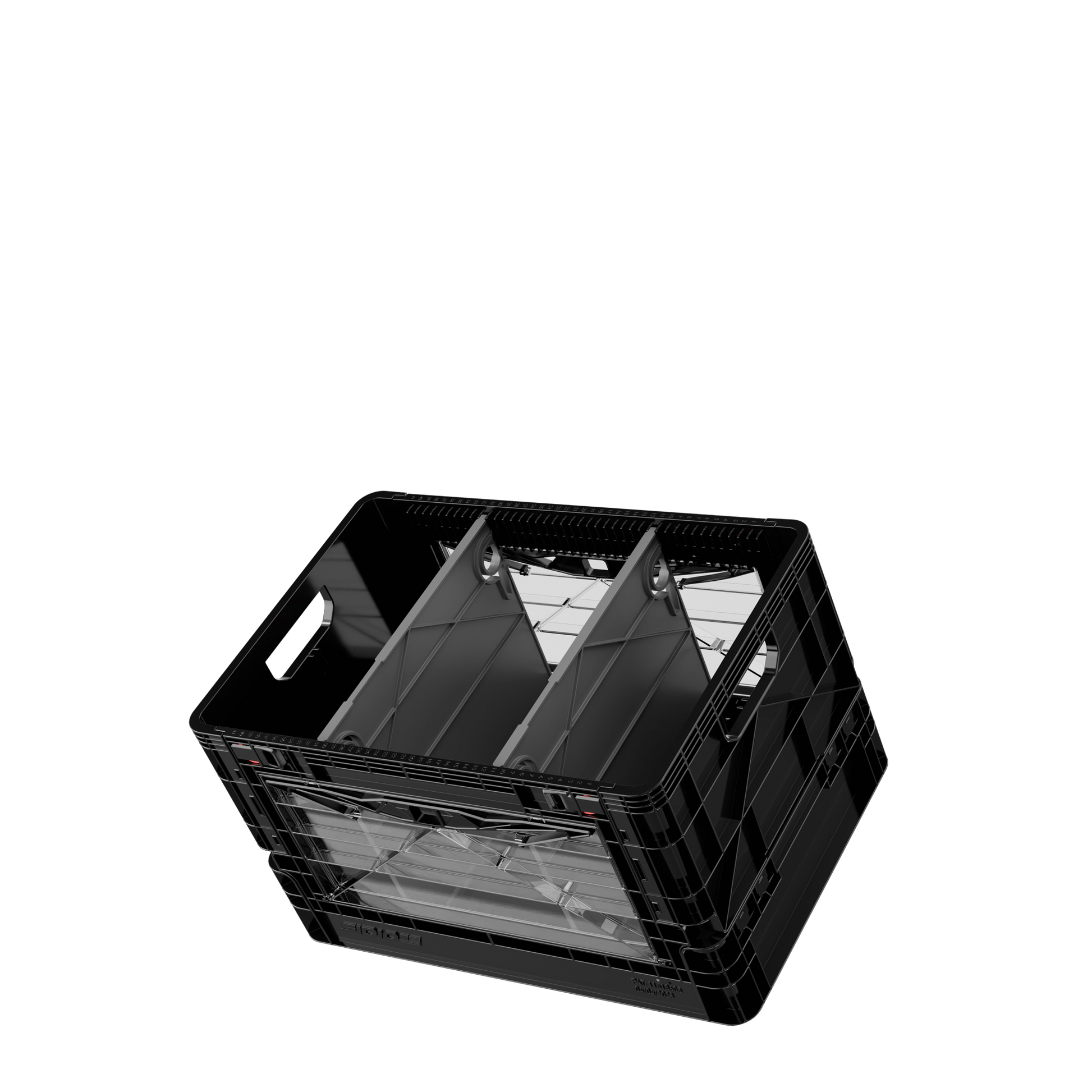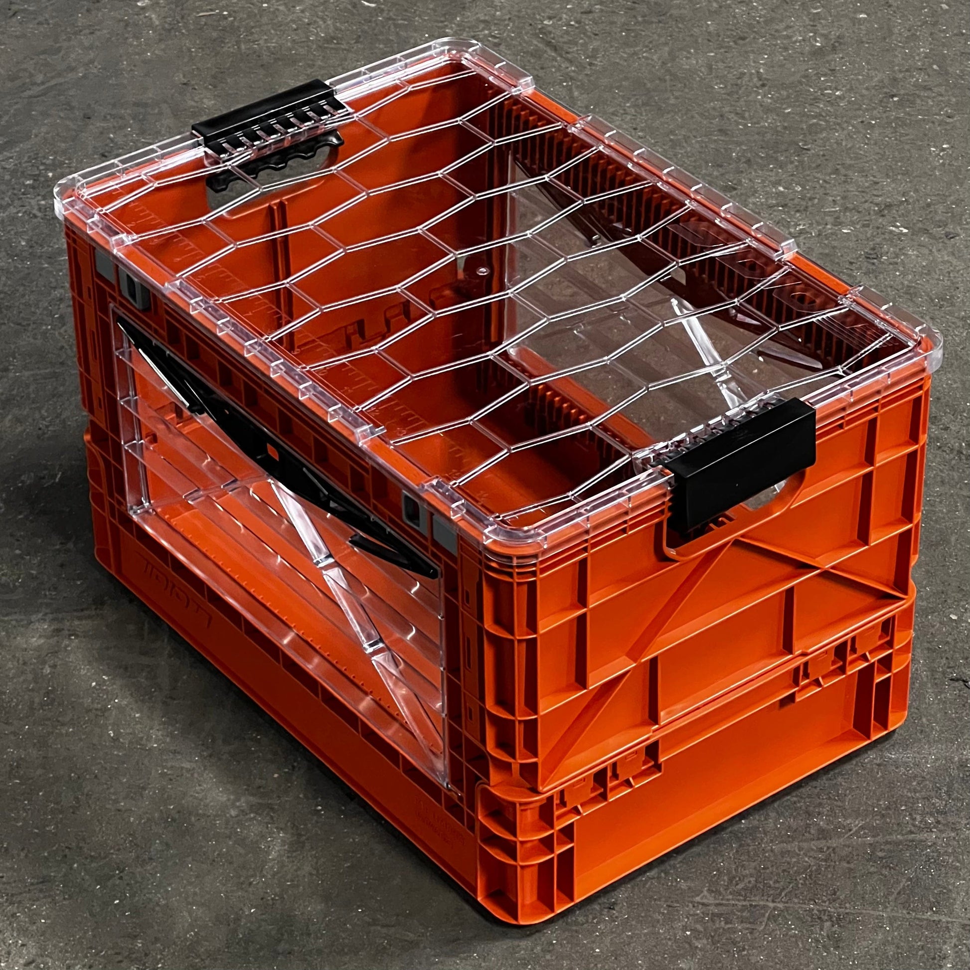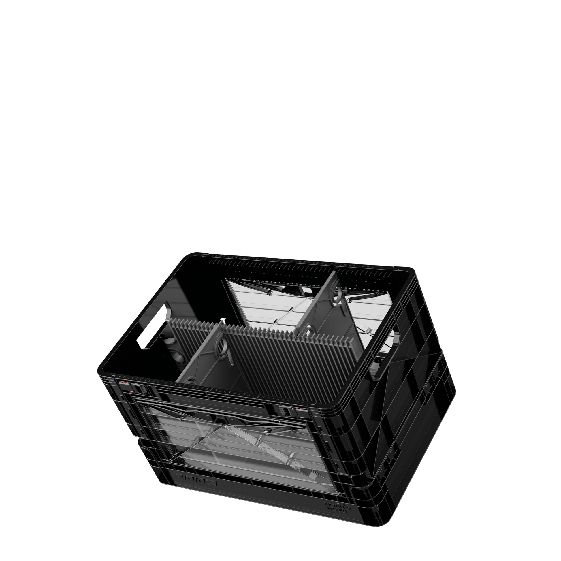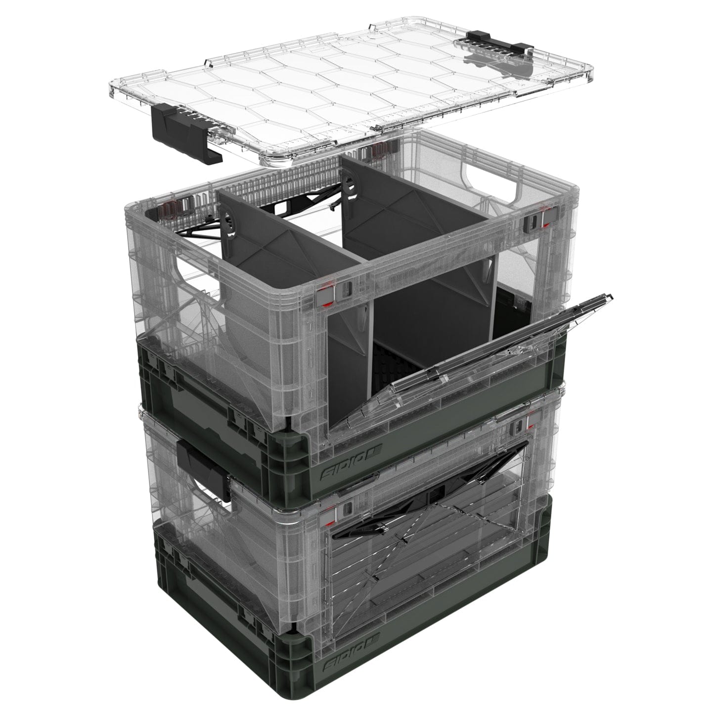 Designed for maximum efficiency and durability, the Full Size Collapsible SidioCrate offers superior storage flexibility. With its collapsible design, reinforced structure capable of supporting over 200lbs, and 41 divider slots, this crate is built for heavy-duty use. The side access window allows for quick retrieval, and it stacks securely with or without the lid, whether collapsed or in use. Made from durable polypropylene block copolymer, it resists cracks, dents, and extreme temperatures, ensuring long-lasting performance. Perfectly stackable with standard 24qt milk crates, it’s the ultimate storage solution for any environment.