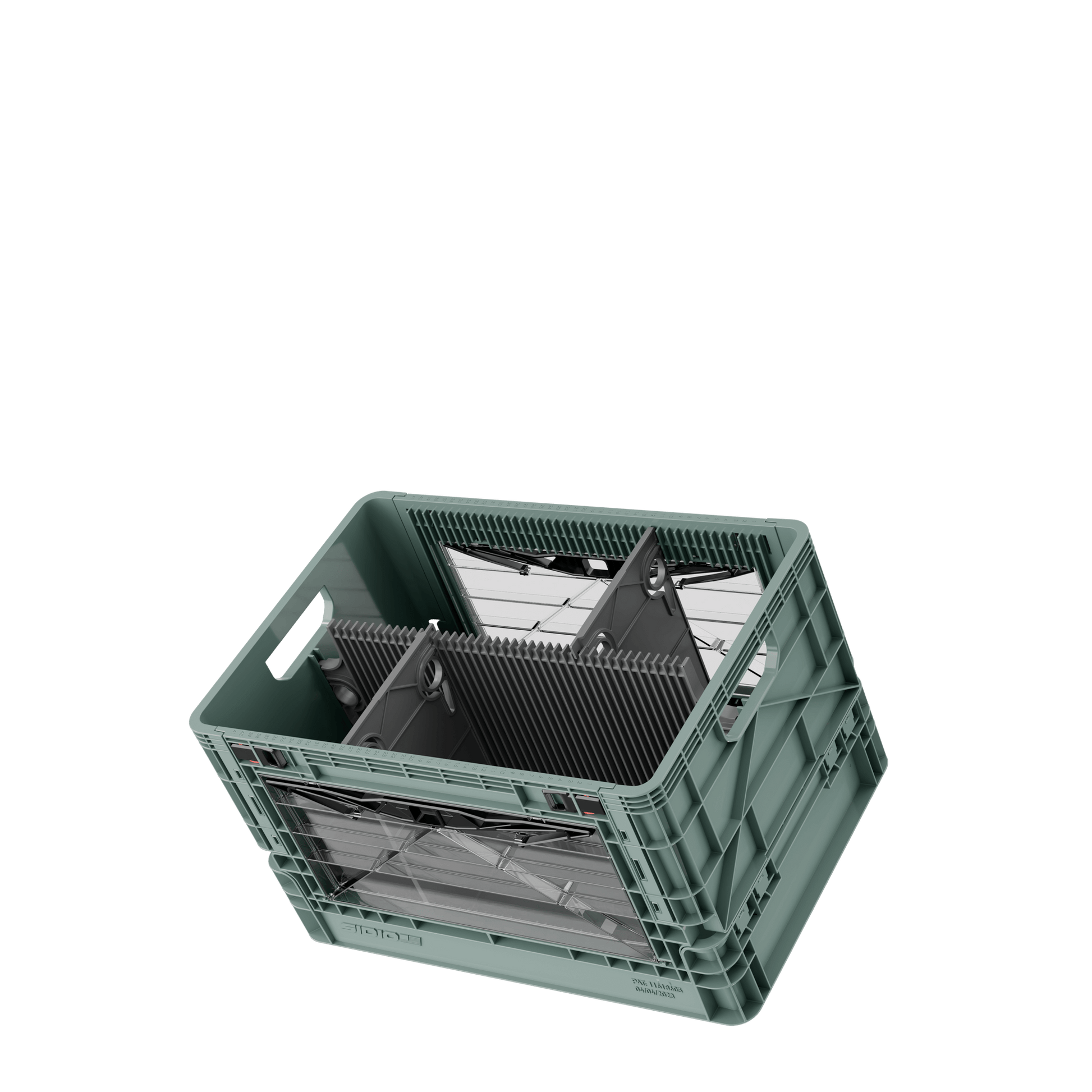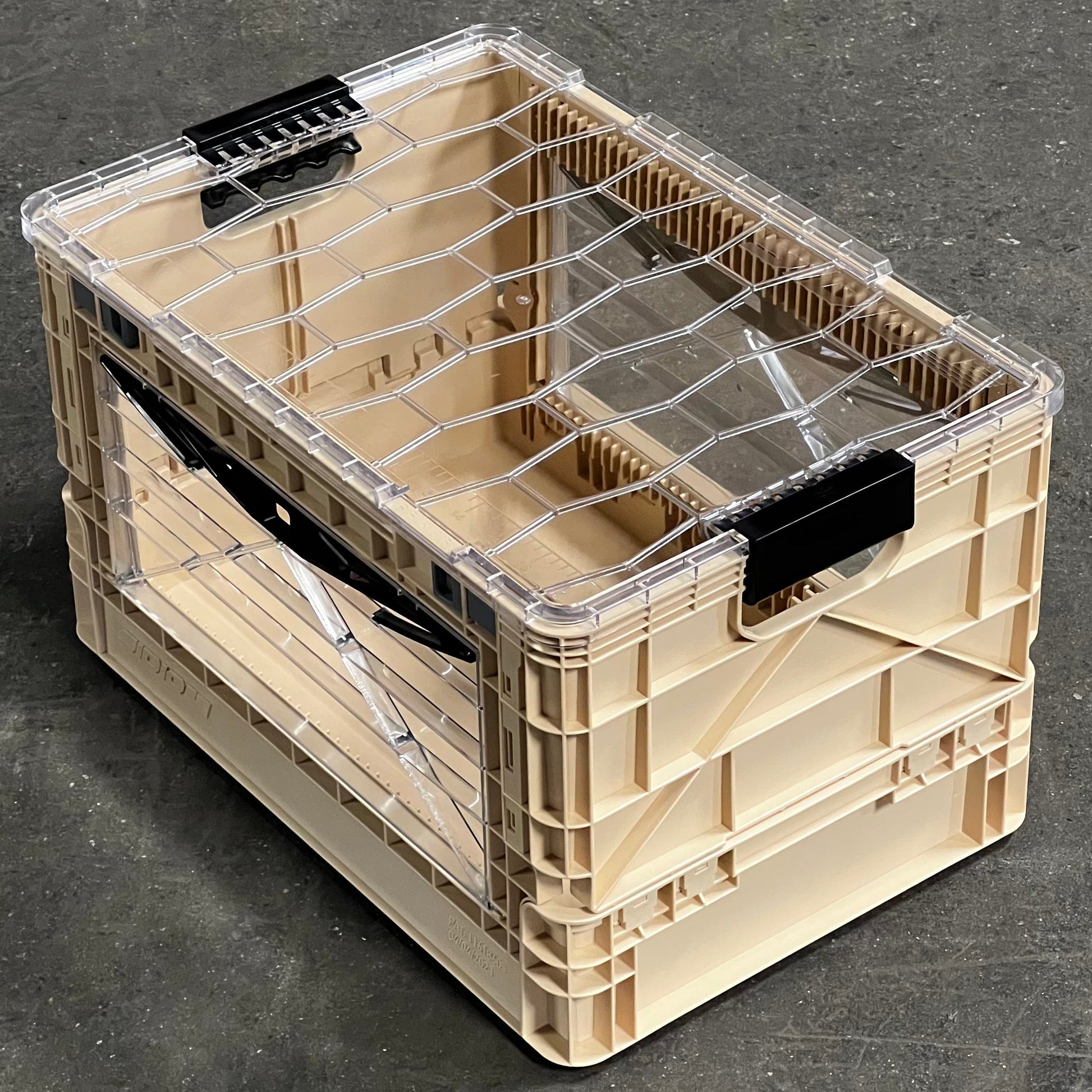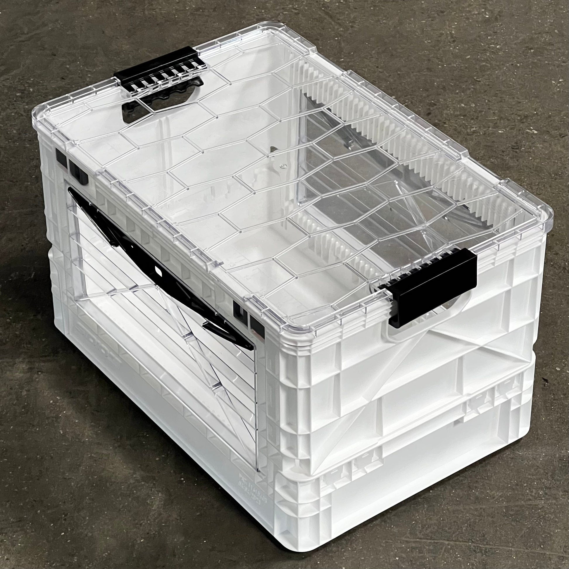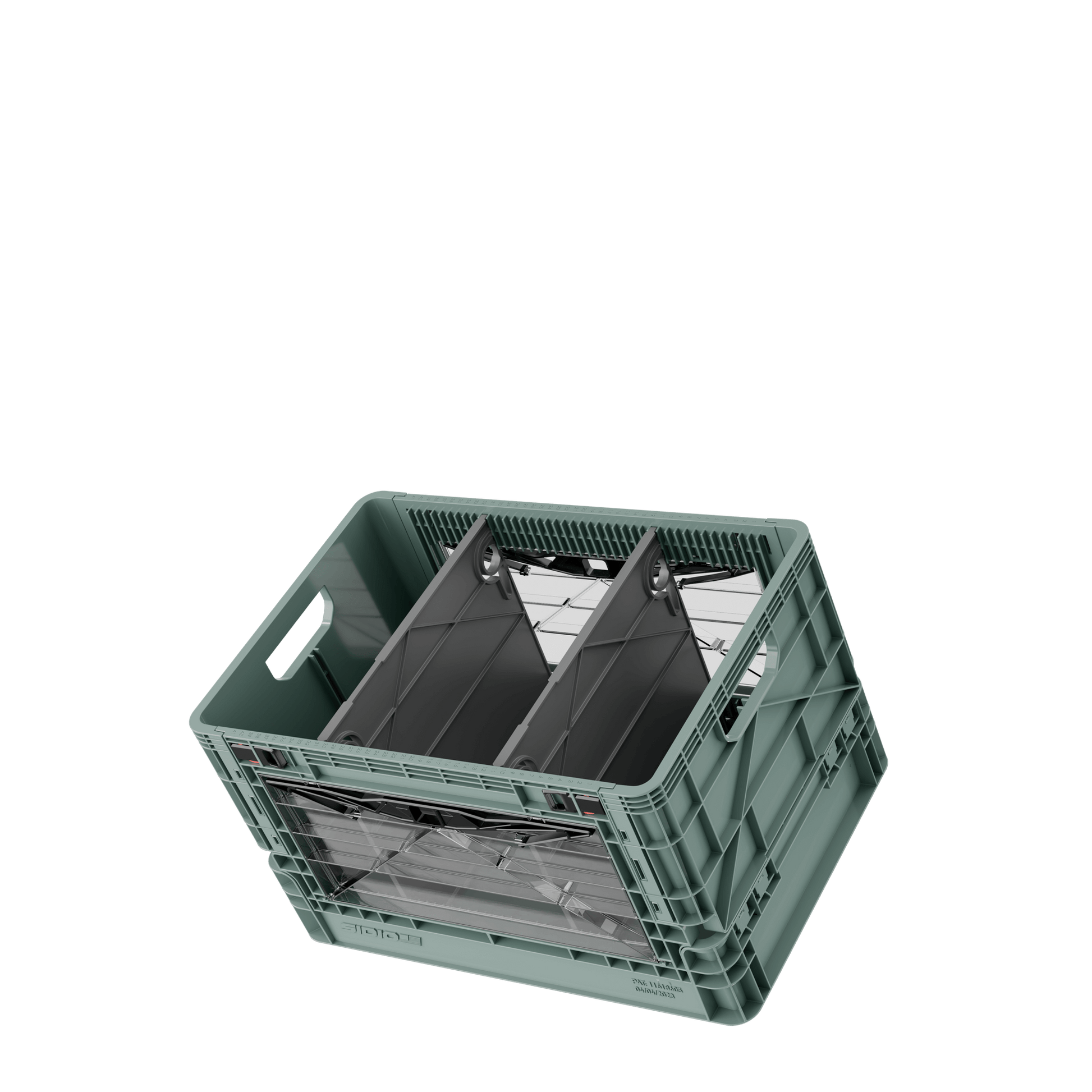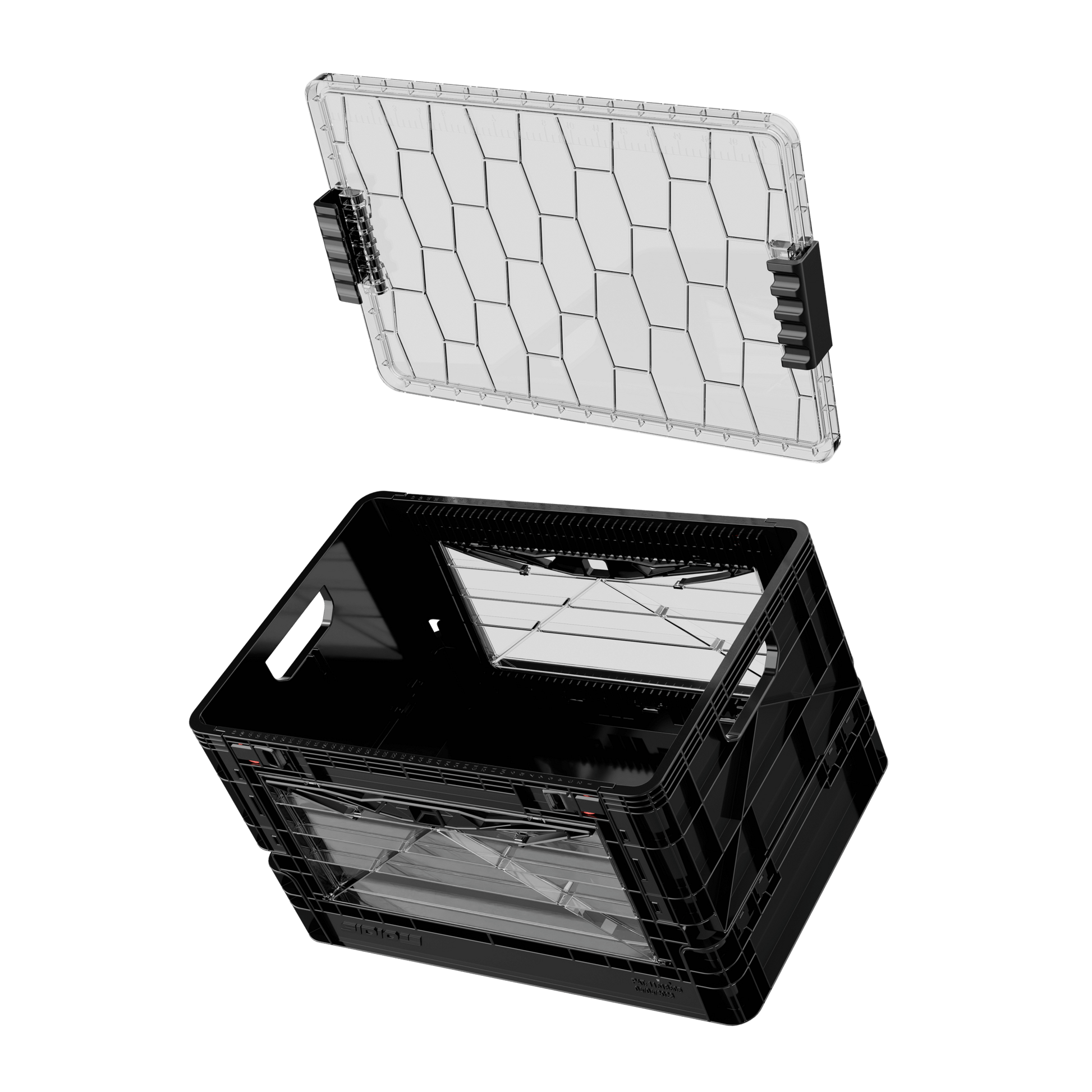 Designed for maximum efficiency and durability, the Full Size Collapsible SidioCrate offers superior storage flexibility. With its collapsible design, reinforced structure capable of supporting over 200lbs, and 41 divider slots, this crate is built for heavy-duty use. The side access window allows for quick retrieval, and it stacks securely with or without the lid, whether collapsed or in use. Made from durable polypropylene block copolymer, it resists cracks, dents, and extreme temperatures, ensuring long-lasting performance. Perfectly stackable with standard 24qt milk crates, it’s the ultimate storage solution for any environment.