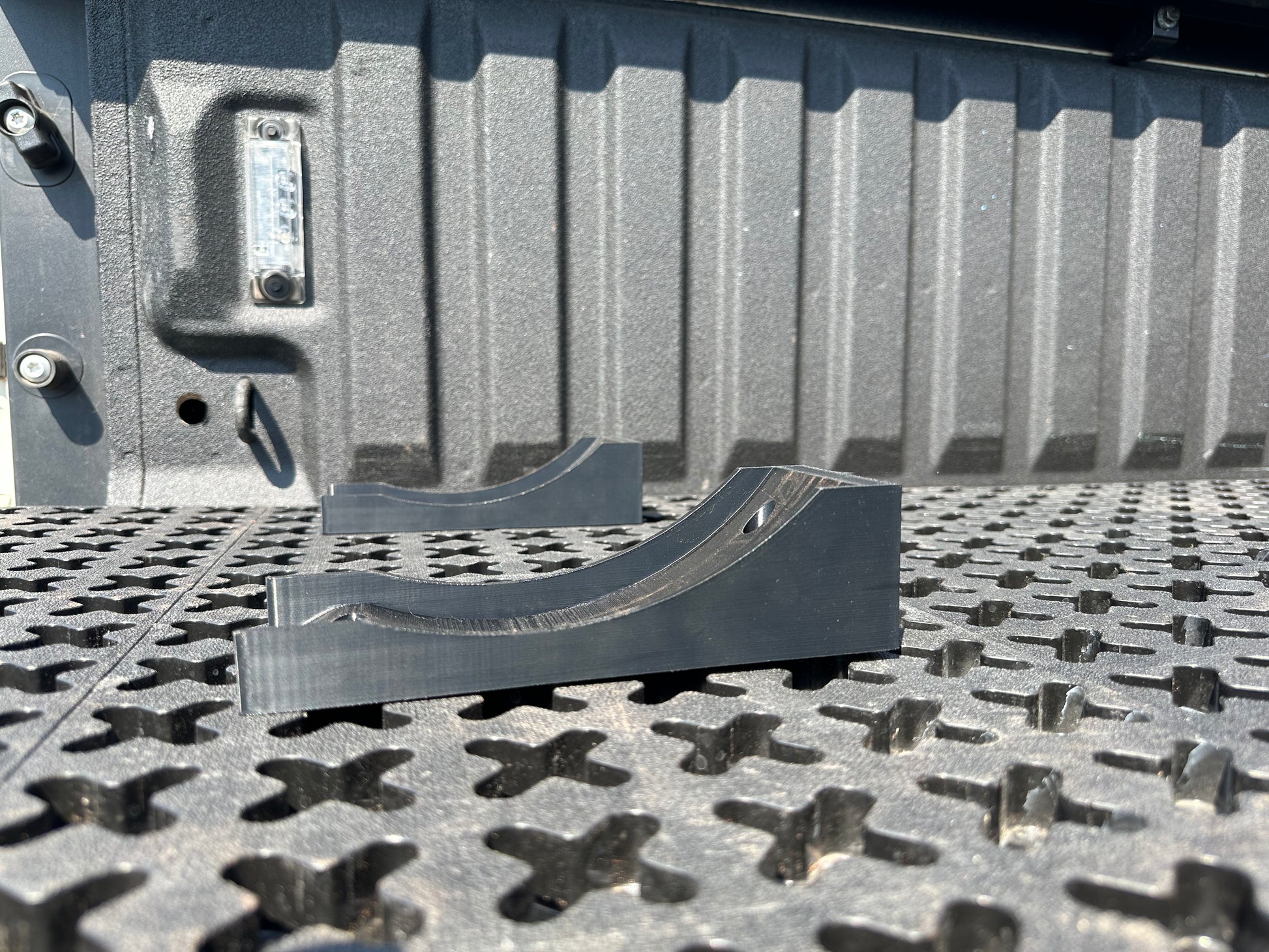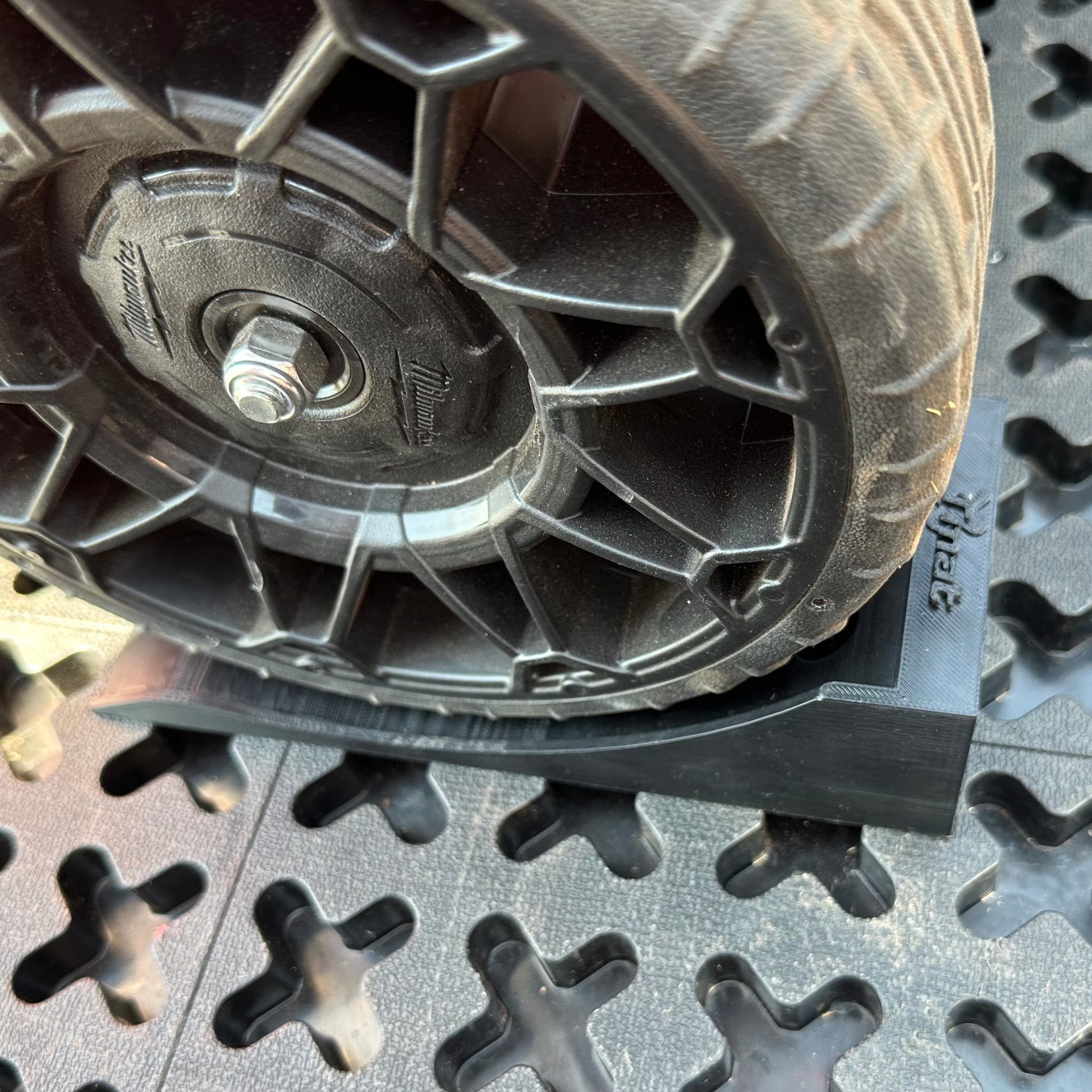 Tmat Wheel Cribs are designed to keep your rolling portable toolboxes and Milwaukee Packouts in place during transit. Just slide or push your toolbox wheels onto the wheel cribs then block the front of your toolbox with Tmat blockers or by simply closing your tailgate against your toolbox.