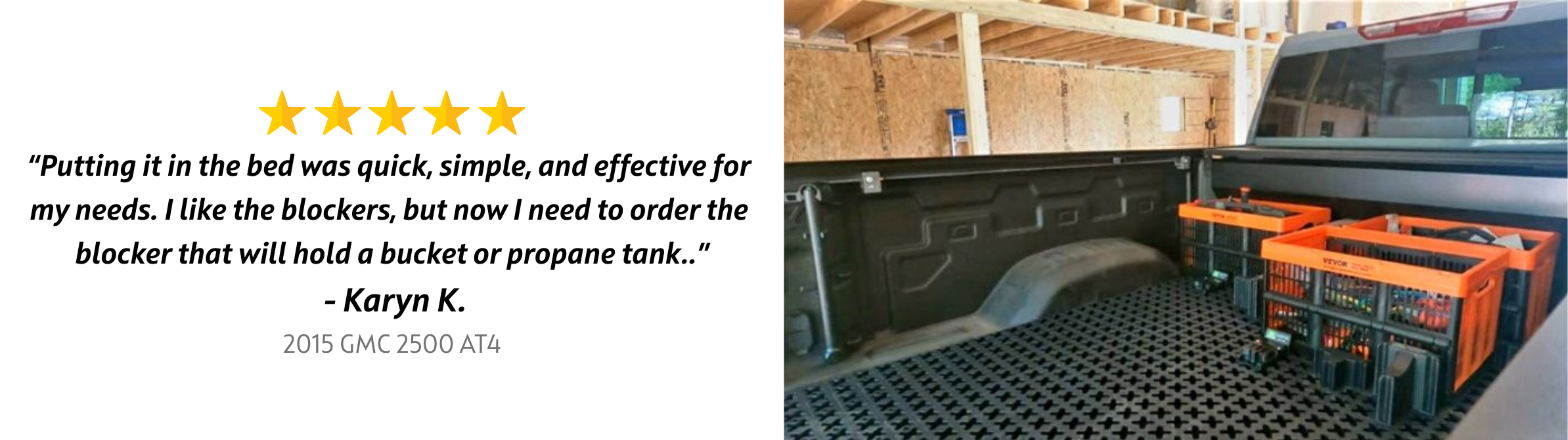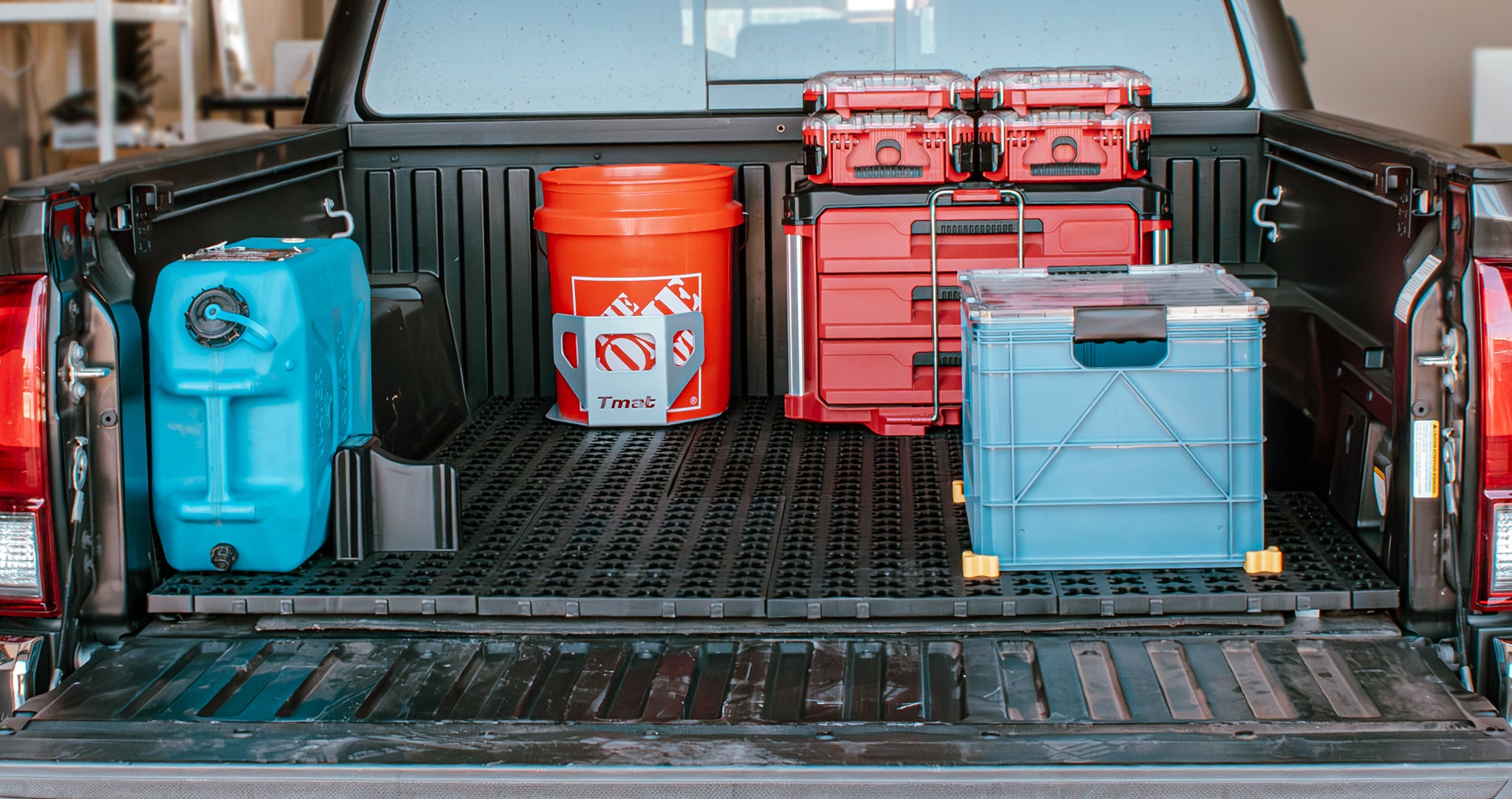 Outfit your GMC Sierra 2500 HD with a cargo management system designed for advanced truck bed organization. Adjustable blockers plug into the mat in any arrangement, allowing you to create compartments for tools, gear, and equipment. The system fits between the wheel wells and slides out to the tailgate for quick access. Works with drawer systems, bed slides, and other custom setups.