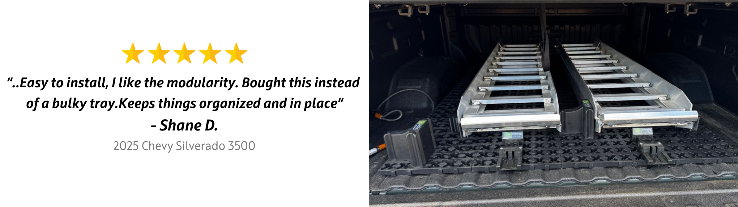 Take your Chevrolet Silverado 2500 HD’s truck bed organization to the next level with this cargo management system. Adjustable blockers plug into the mat in any layout you choose, creating spaces for tools, gear, and equipment. Built to fit between the wheel wells, it glides toward the tailgate for fast, easy access to your cargo. Pairs seamlessly with drawer systems, bed slides, and other custom setups.